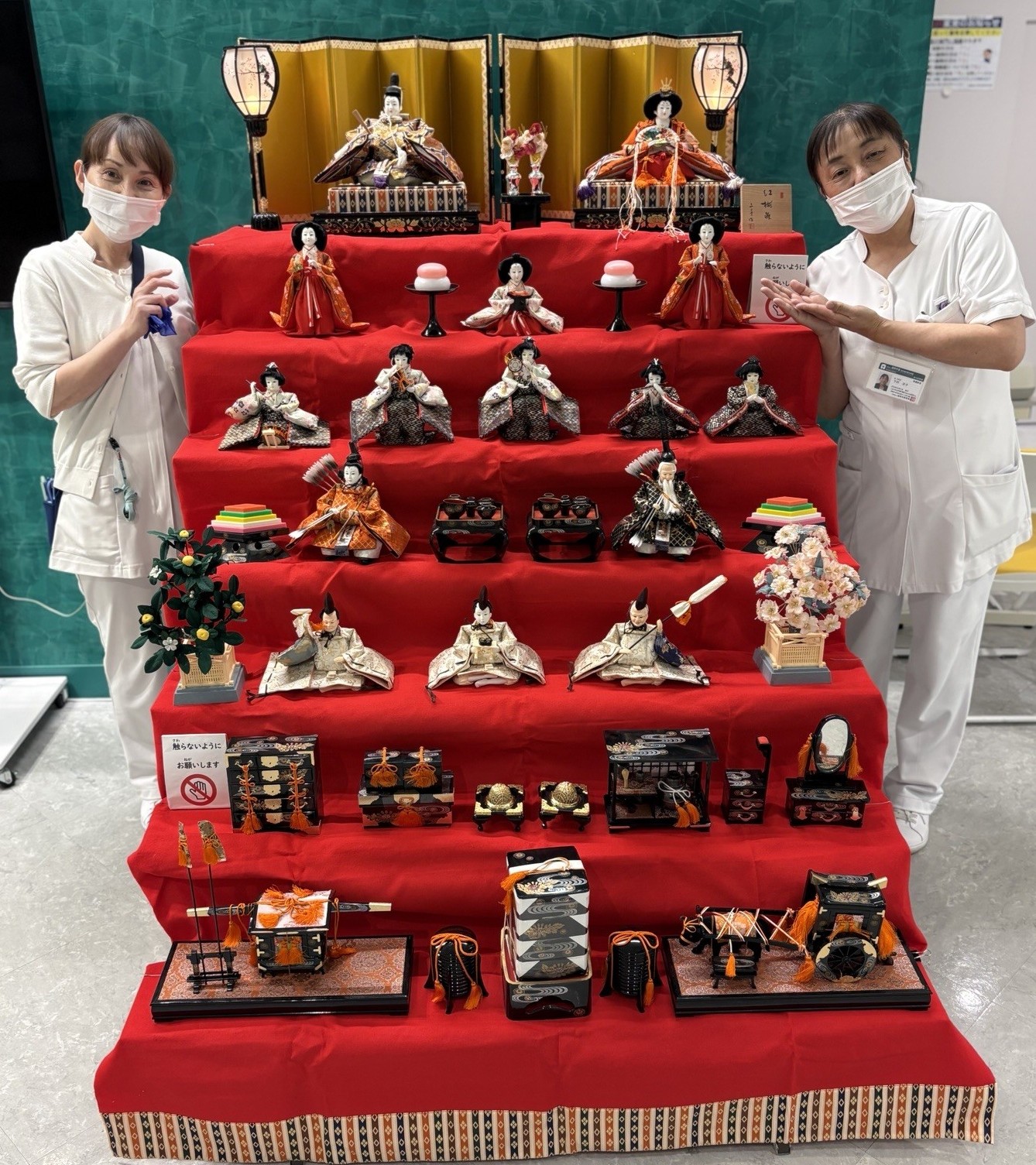 今年度は昨年4月に着任した看護師長が、初めて「お雛様飾り」を担当しました。
